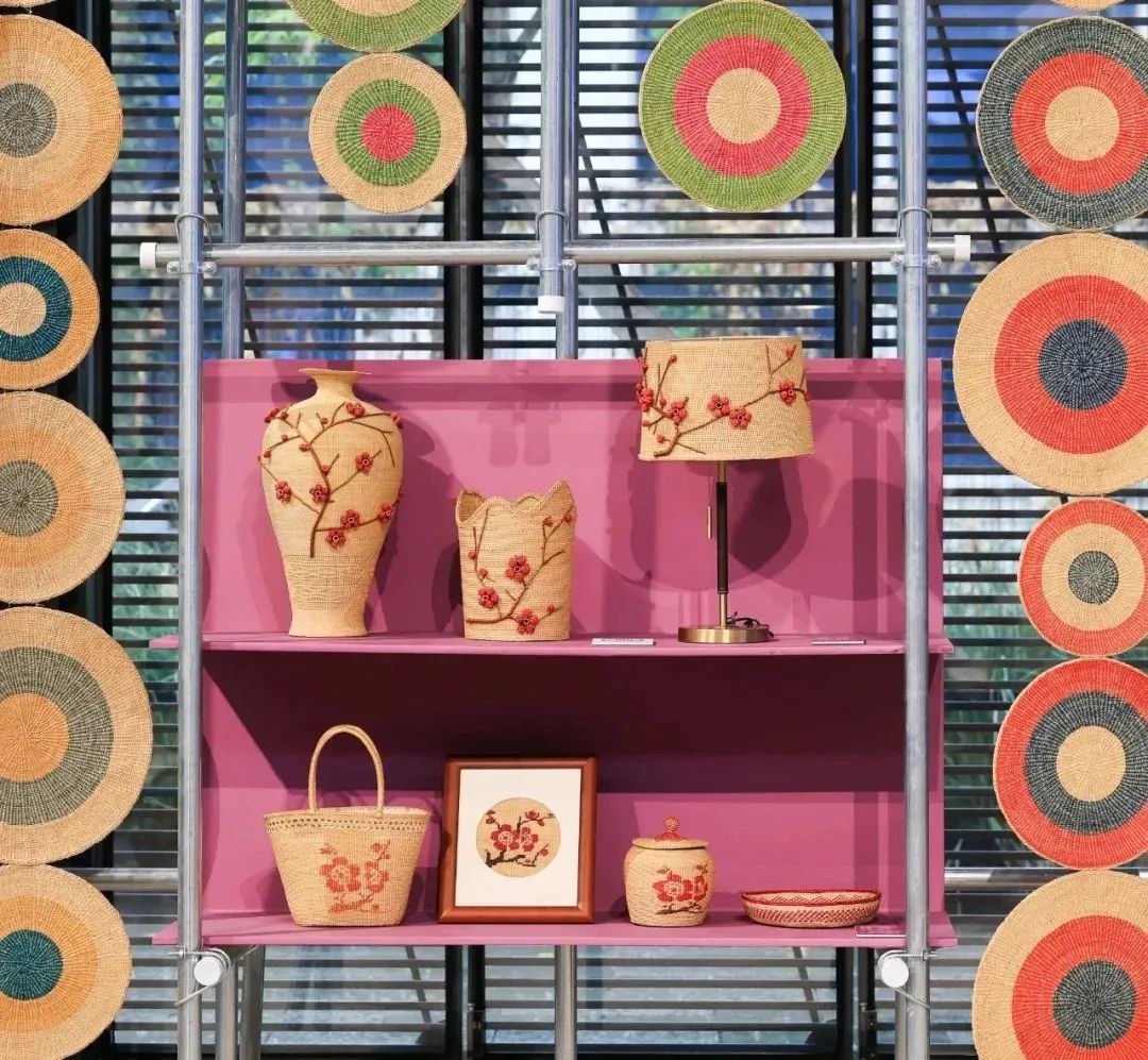 徐行草编是以黄草为原料,利用材料的柔韧,采用多种编法编织成轻巧耐用、自然环保的生活用品,如拖鞋、收纳篮、草包、草帽等。编织的图案丰富,色彩多样,常见有龙凤纹、牡丹纹、双喜纹等,表达人们对美好生活的憧憬。