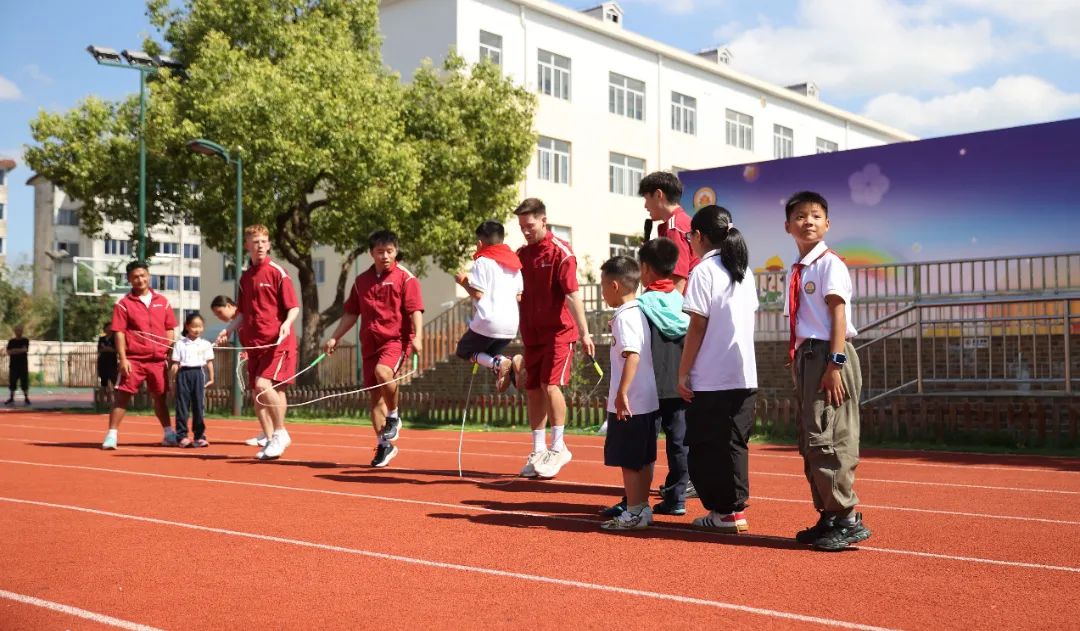 9月23日上午,由跳绳世界冠军组成的上海跃动花样跳绳演艺团队——超新星跳绳团队走进嘉定区望新小学,开展个人花样展示、交互绳表演,科普跳绳知识普及,与学生零距离互动,展现中国跳绳这项古老运动项目的魅力。