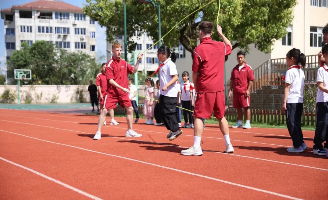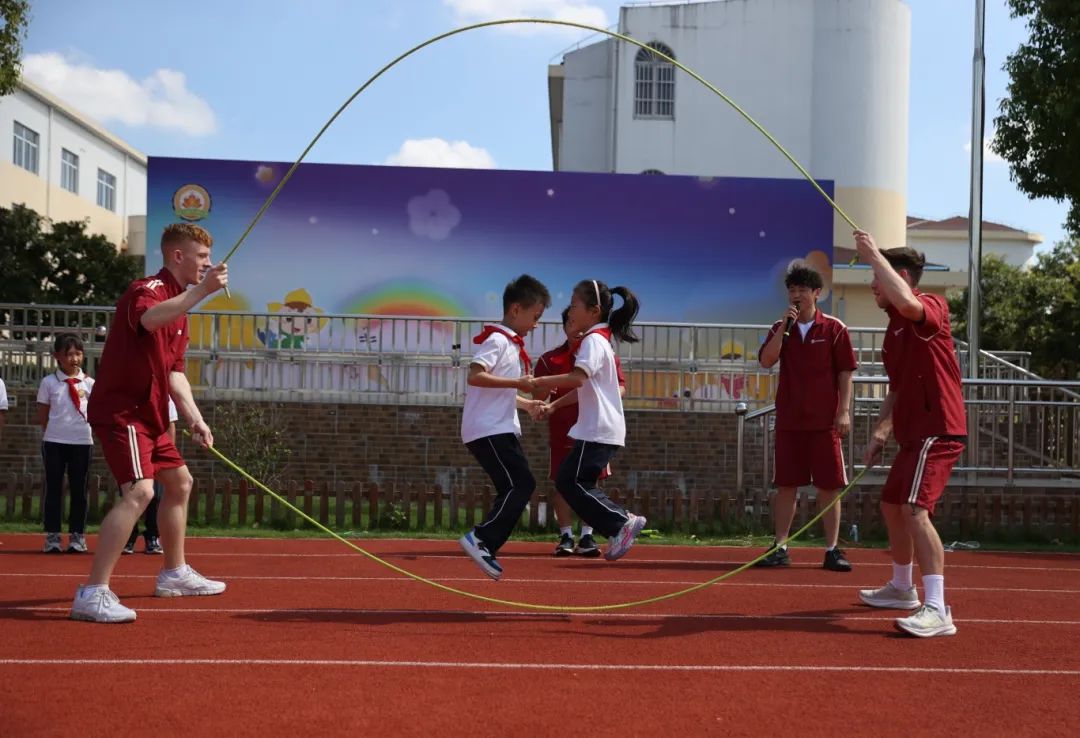 来自澳大利亚的世界跳绳冠军、世界跳绳推广大师卢克·布恩与现场学生友好互动,同团队队员一起展示双人花样跳绳表演秀,欢快的节奏,炫酷的表演让在场学生尖叫连连,掌声欢呼声不断。活动现场,两位低年级小朋友受邀参加交互绳双人挑战,通过默契配合完成任务并赢得奖品。“我很开心来到中国,希望我们的表演能够让更多的小朋友感受到跳绳带来的快乐与成就感,并爱上这项既能锻炼身体又能培养协调性与团队精神的运动,期待下一次的见面。”卢克·布恩表示。