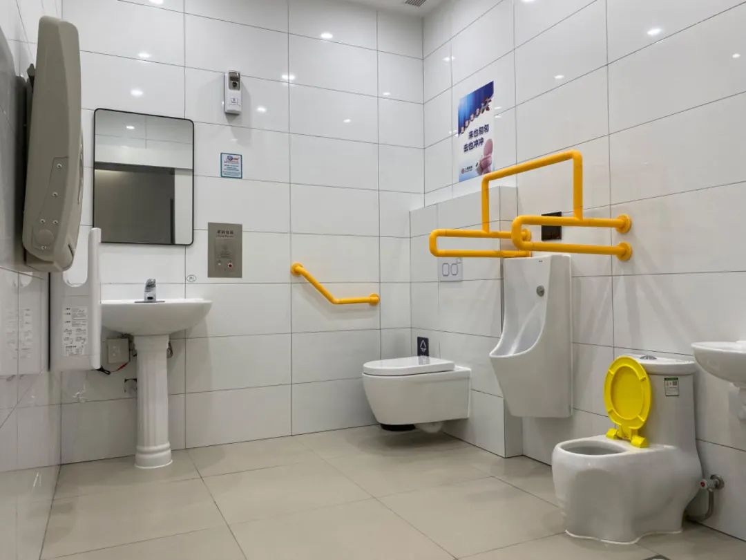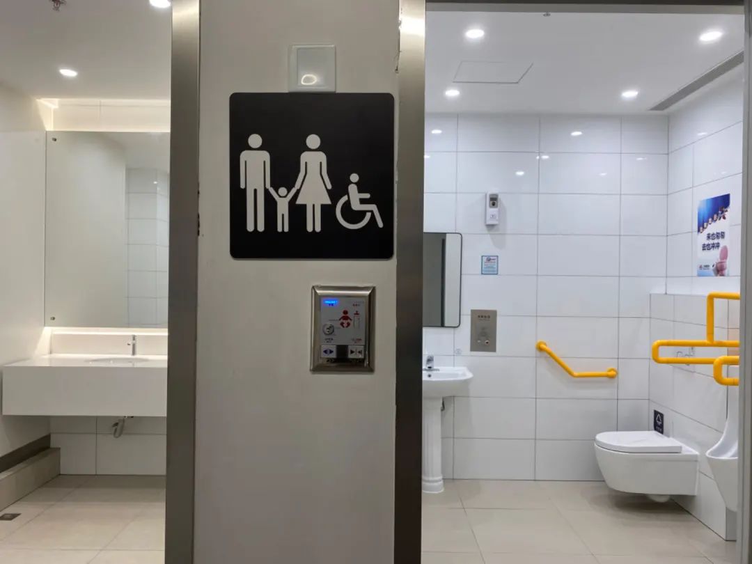 在新开启的2号口附近,记者发现,还有一座新建成开放的卫生间,除了男女厕间,还有第三卫生间,男女老少婴幼儿使用都非常方便。卫生间开放时间跟地铁运营时间同步。