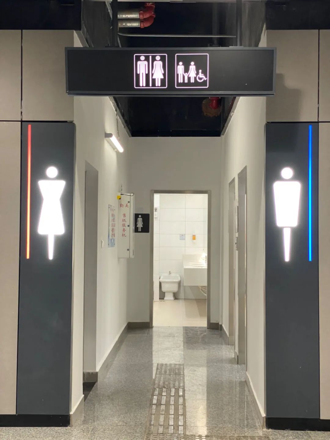 走进去依次是第三卫生间、男厕间、女厕间