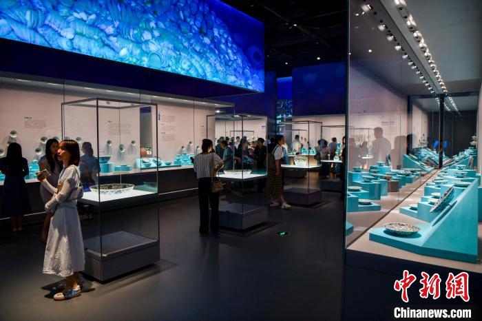 9月27日,海南琼海,民众参观展览。当日,“深蓝宝藏——南海西北陆坡一二号沉船考古成果特展”在中国(海南)南海博物馆开展。本次展览是南海海域深海考古调查的成果专题展。在深海1500多米处沉睡了500多年的出水文物首次公开亮相。展览展出上述两处明代中期沉船遗址出水的文物408件(套),还有故宫博物院等借展文物34件/套,共计展出442件(套)。中新社记者 骆云飞 摄