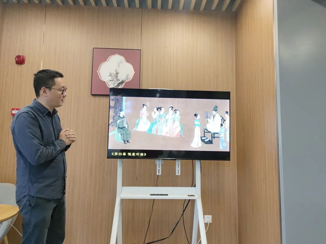 讲座中,蔡振通过视频的方式,将动态的《韩熙载夜宴图》呈现给观众。“这不仅是一场视觉的革新,更是对传统文化传承方式的深刻探索。希望通过这场讲座,能让更多人感受到中华文化的独特魅力,同时也思考在数字化时代如何更好地利用科技手段,让传统文化以更加生动、直观的方式走进现代生活,焕发新的活力。”