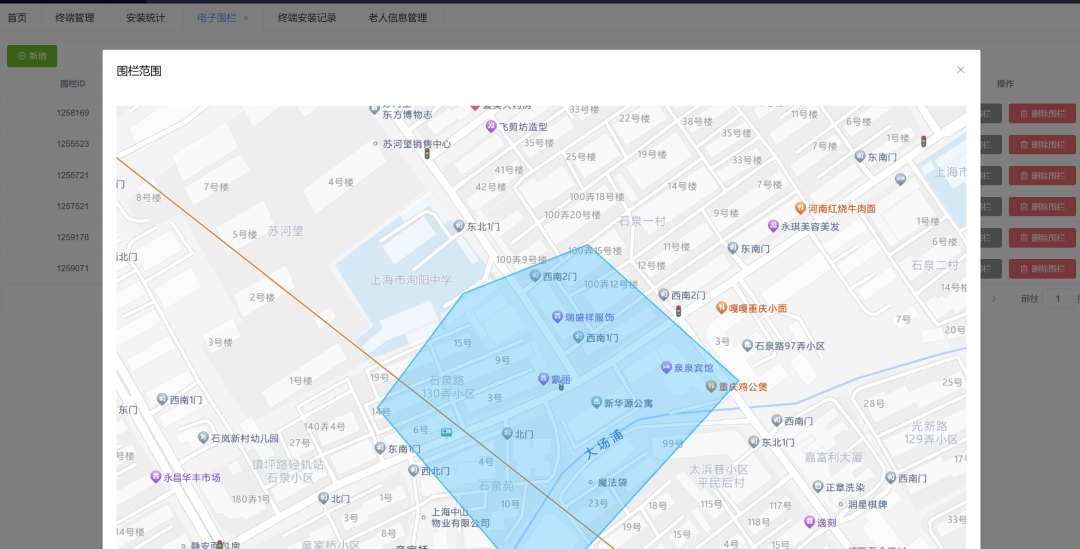 此外,通过“电子围栏”功能,家属可通过预设老人位置安全范围,来感知老人位置及是否超出设定的安全活动范围区域,当老人超出安全范围时,家属会收到相关公众号提示,并能及时找到老人所在位置,避免发生意外。