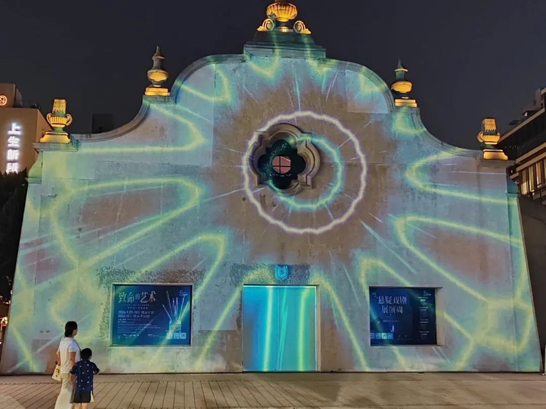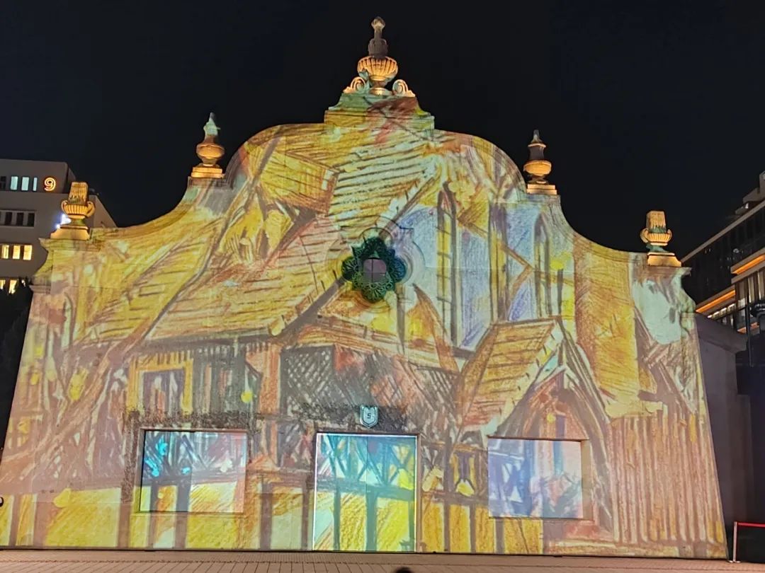 本次光影节长宁分会场的入口设置在上生·新所安西路的入口,在这里,穿过“光创之门”和“光合矩阵”,就能看到本次光影节长宁分会场的主秀《光影奇遇》。这是为长宁量身定做的一款光影秀,以海军俱乐部的外墙为背景,分三幕故事讲述了匈牙利建筑师邬达克和长宁的不解之缘。主秀通过20幅手绘作品,细致地呈现了邬达克在长宁的所有建筑,让市民们可以领略其过去、现在和未来。据介绍,这部光影秀时长3分钟,每30分钟循环播放一次。