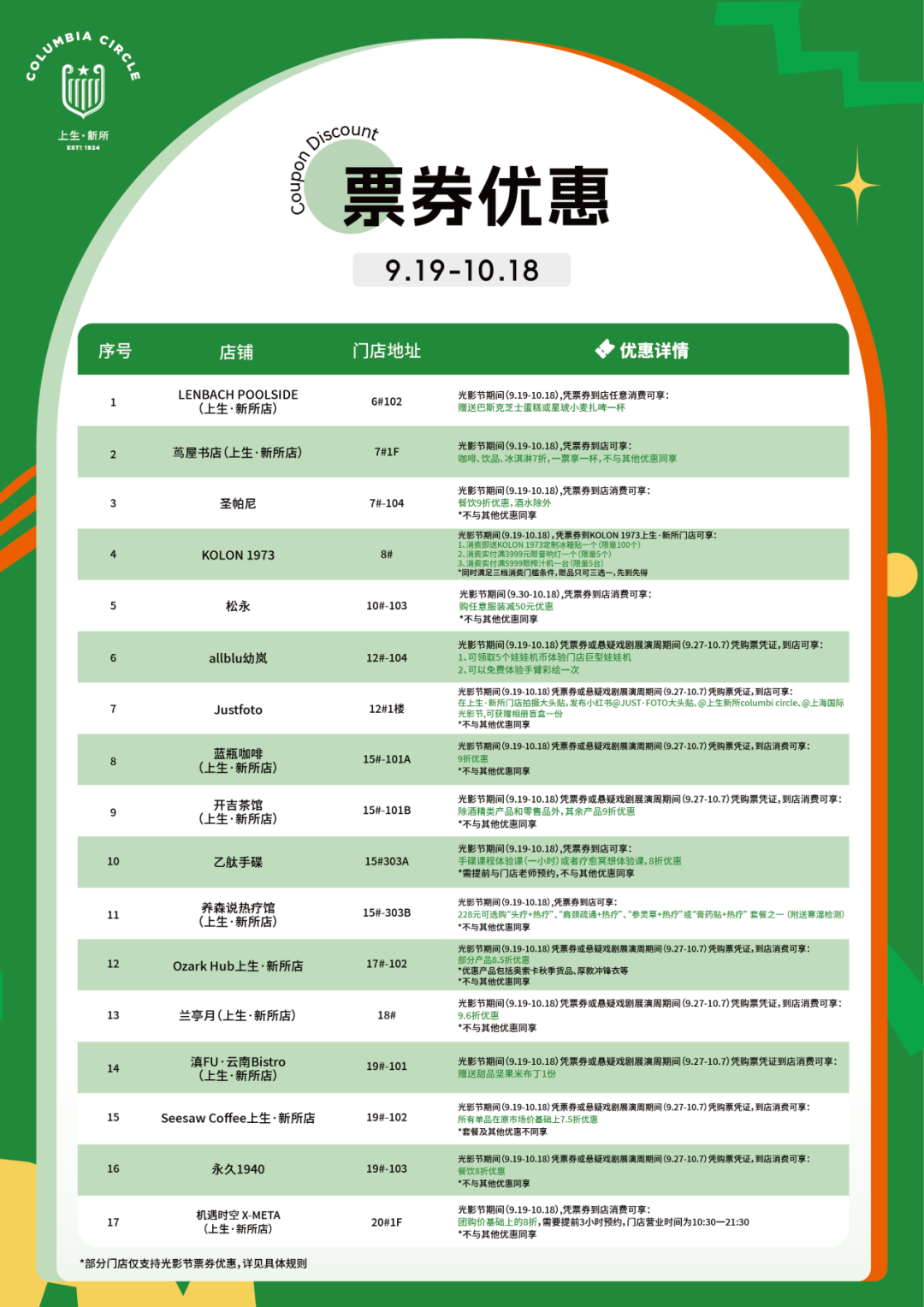 此外,区商务委还联合多家商场、店铺开展一系列满减折扣活动,市民凭市光影节主会场门票(票根)即可享受商促优惠。