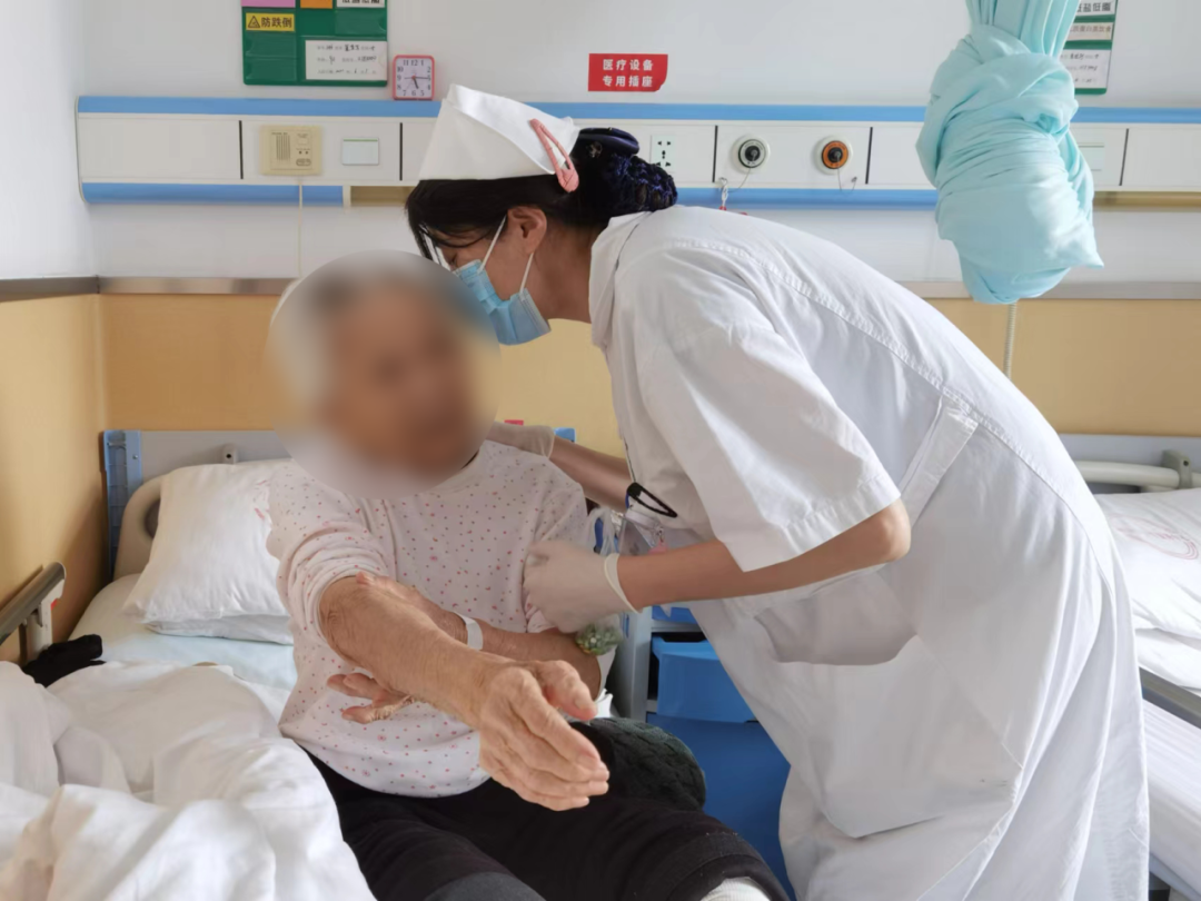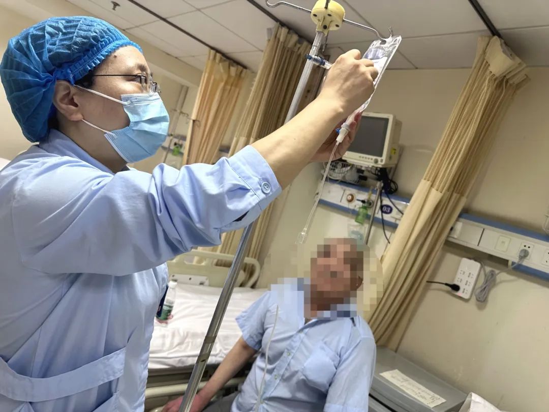 国庆节当天,在护理岗位上工作20余年的主班护士刘永喜,常规接班前对楼层各医疗设备进行详细的班前巡查,准时与夜班护士叶超慧做好交接班。上岗后,她配合当班医护人员巡视病房,倾听患者主诉,及时汇报值班医生,认真核对医嘱并执行,确保病区安全无虞,她的工作热情得到病区患者及家属的肯定。