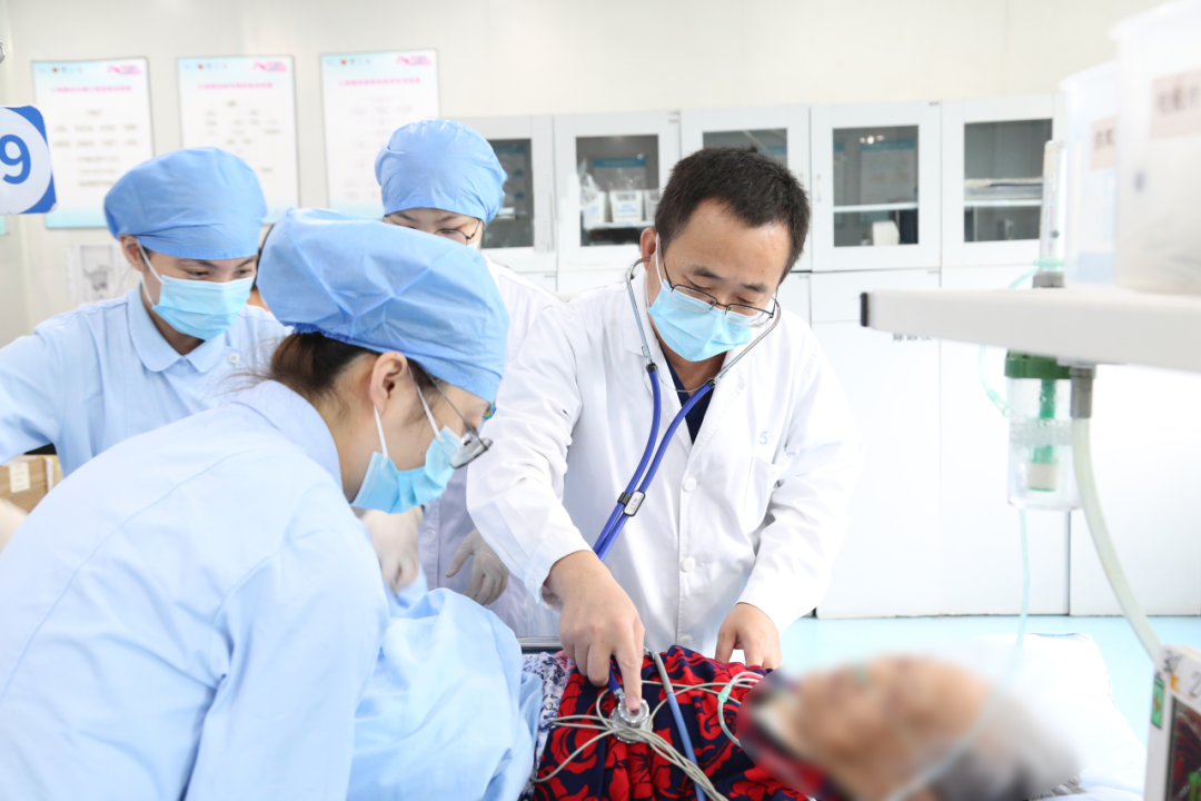 国庆第一天早交班刚刚结束,一辆救护车急驶至急诊抢救室门口,一名老年患者躺在推床上被送进了抢救室,当班护士立刻熟练地给患者吸上氧气、接好监护,并迅速开通静脉通路。值班医生张学敏也马上迎了上去参与抢救,在患者病情稳定之后,他便再次投入到其他患者的救治中。