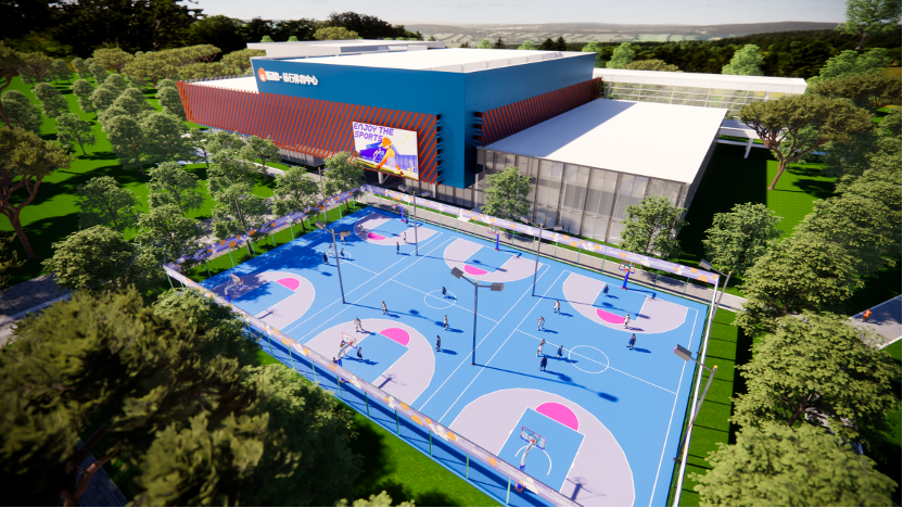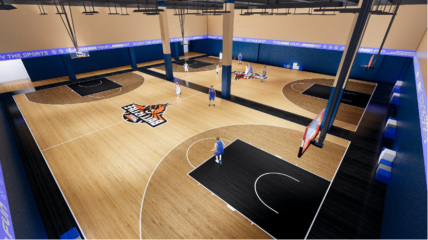 设置3片篮球全场,采用硅PU彩漆搭配,营造活力运动氛围。