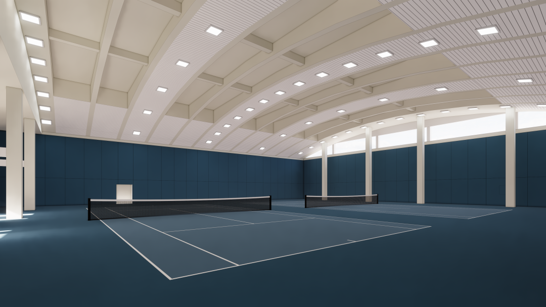 常规开放12片羽毛球标准双打全场,全馆铺设龙骨+A级赛事木地板,增铺PVC运动地胶,提供弹性支撑,减少膝盖承压;侧面布局排灯,有效削减炫光干扰,保障运动健康的同时带来专业运动体验。场馆配备赛级LED大屏、计时计分系统、媒体转播空间及各类赛事服务空间,可满足各类球类赛事、文体活动和大众健身需求。