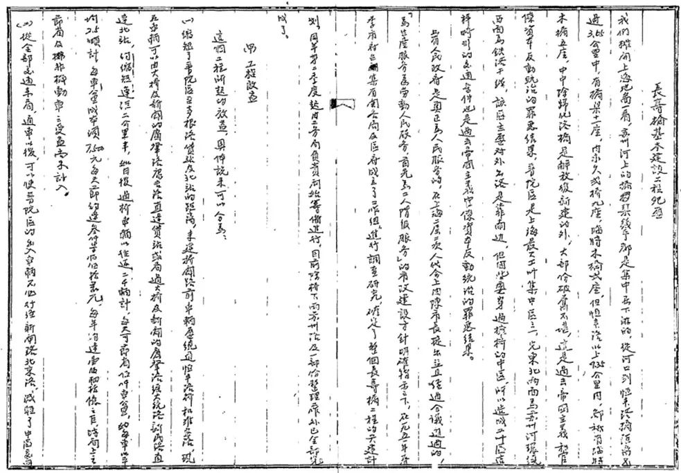 这份档案记载,上海市人民政府积极贯彻落实1951年4月召开的上海市第二届各界人民代表会议第二次会议相关精神,迅速召集有关各局和区政府成立“工作组”进行调查研究,确定整个长寿路桥工程计划,并详细记录“工程效益”“工程概况”和“施工经过”。