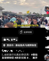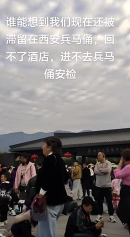 10月4日,陕西省西安市,有多位网友发视频称,跟旅行社去秦始皇兵马俑参观,却发现门票没有购买成功,导致大量游客滞留。