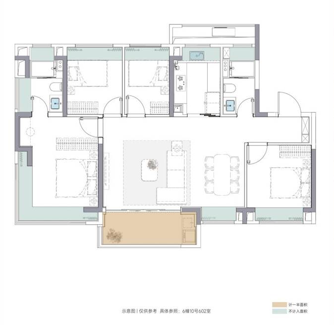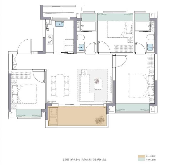 建筑面积约125㎡的四房两厅两卫,南向横厅面宽约6.8米,奢享更大采光面;主卧套房配备270度转角飘窗带来宽境视野,尽收西侧湿地公园景观,打造无界绿色居家体验;北向多功能房适配不同周期家庭需求。