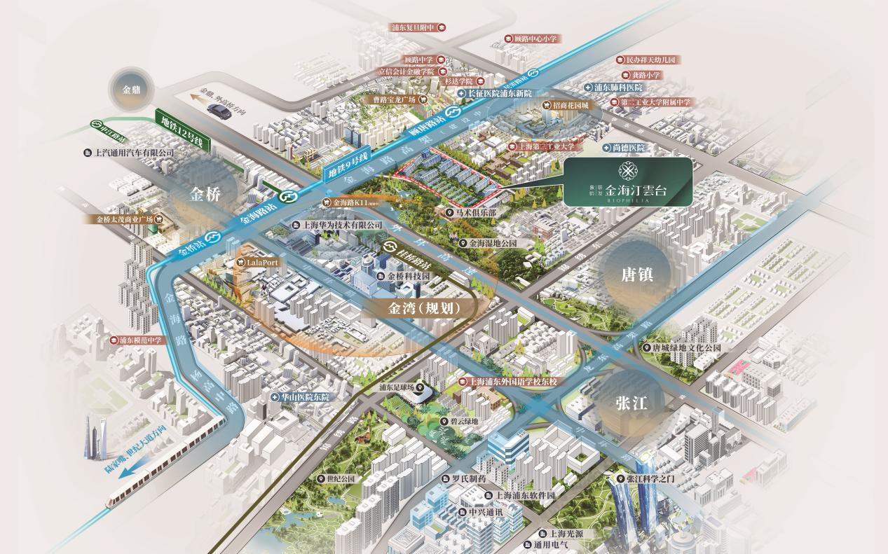 外环高架与金海路高架(在建)组成黄金十字动脉,驾车可快速到达陆家嘴、张江科技城、外高桥保税区等产业价值高地,通达畅行无阻,尽享区位枢纽优势。