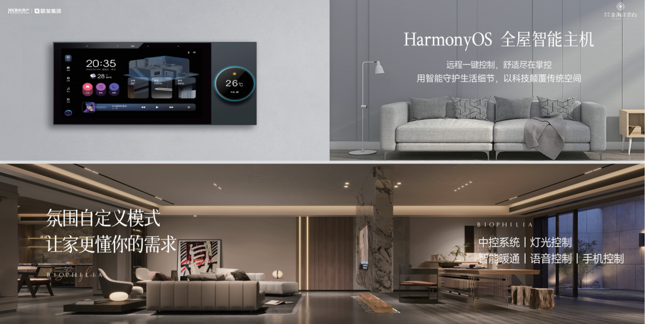 搭载华为鸿蒙生态的全屋智能系统,领创万物互联的智慧生活新趋势,全屋智能中控一键即可控制,纵然在外,也可照料家中的细枝末节;照明系统令随心情调节氛围灯光,家也拥有不同情绪……(仅为展示,实际落地以销售合同约定为准)。