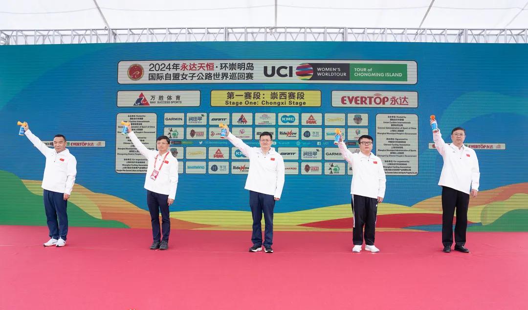 今天(10月15日),2024年环崇明岛国际自盟女子公路世界巡回赛在崇明新城公园鸣枪开赛。上海市政府副秘书长王平,上海市体育局局长徐彬,中国自行车运动协会副主席、上海市竞技体育训练管理中心党委书记王海威,崇明区委书记缪京,区委副书记、区长李峻,副区长施蕾出席赛事开幕式。