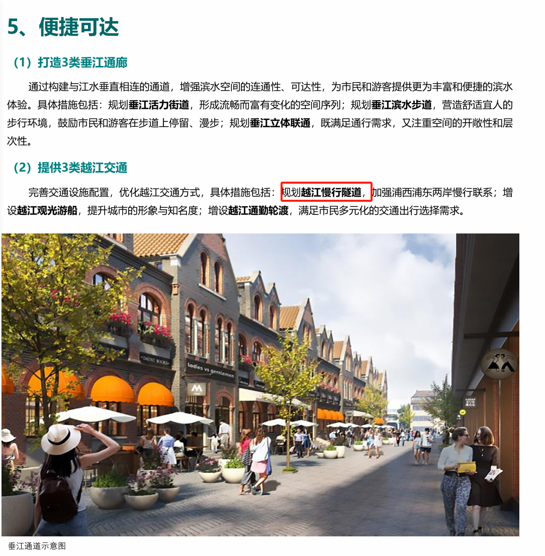 《黄浦江沿岸地区功能融合发展和空间品质提升专项规划(2024-2035年)》草案中,提及规划越江慢行隧道。