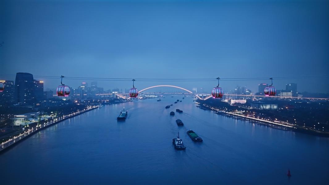 2023年4月,在黄浦江上打造首个跨江缆车的消息曾引发广泛关注。当时,中国旅游集团、西岸集团、香港置地集团三方联手宣布,计划打造黄浦江跨江缆车“浦江之心”,为游客和市民搭建一条连通浦东浦西的空中走廊。