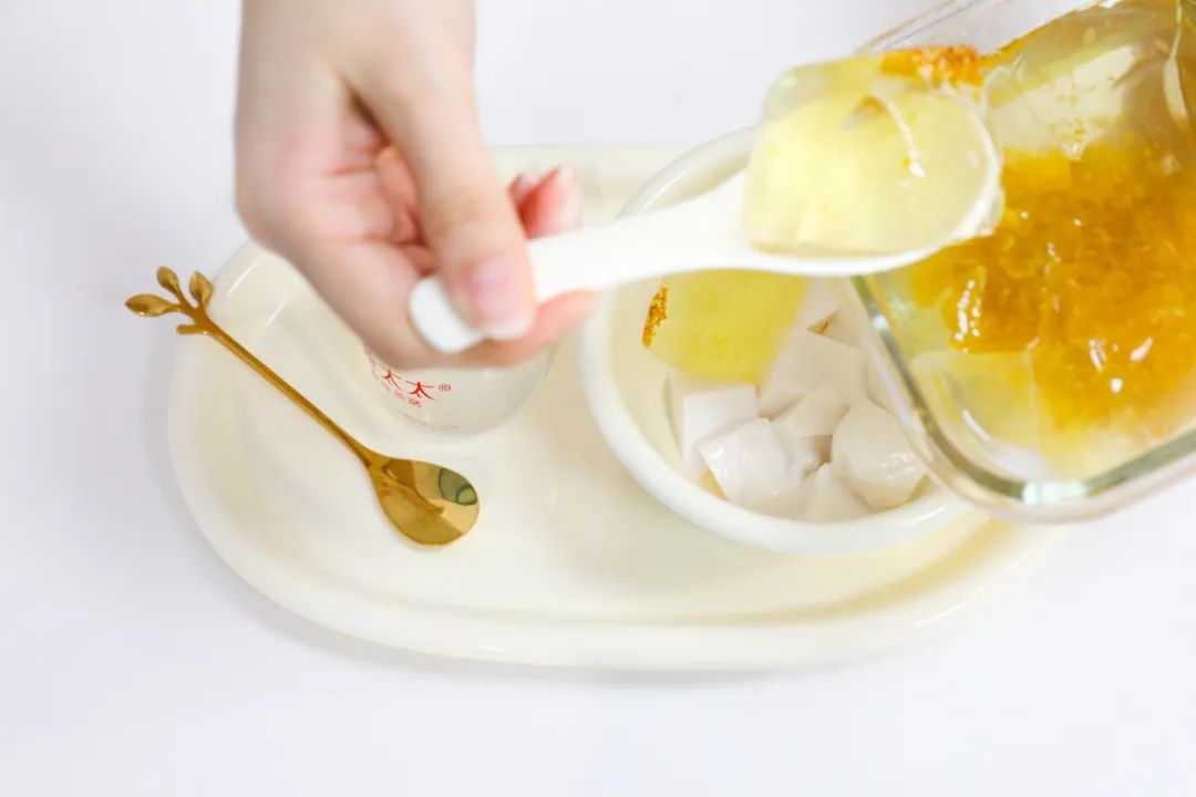 食材需要准备好椰奶、白凉粉、糖桂花、马蹄爆爆珠,还有最最重要的燕太太鲜炖燕窝。