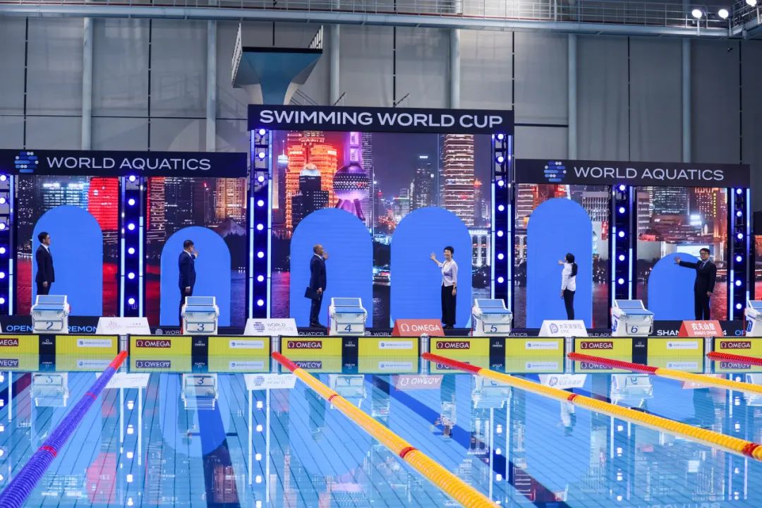 碧波荡漾,水光绽放!北京时间10月18日晚间,2024年世界泳联游泳世界杯(上海站)开赛仪式在东方体育中心游泳馆举行,上海市副市长解冬,世界泳联主席侯赛因·阿尔-穆萨拉姆,世界泳联副主席、中国游泳协会主席周继红,上海市政府副秘书长王平,上海市体育局局长徐彬,东浩兰生(集团)有限公司总裁李栋出席开幕式,并共同启动赛事。18日-20日,包括19位奥运冠军选手在内的200余位世界泳坛高水平选手在总计34个项目(男女各17项)上,为今年年底布达佩斯短池游泳世锦赛的资格而战。