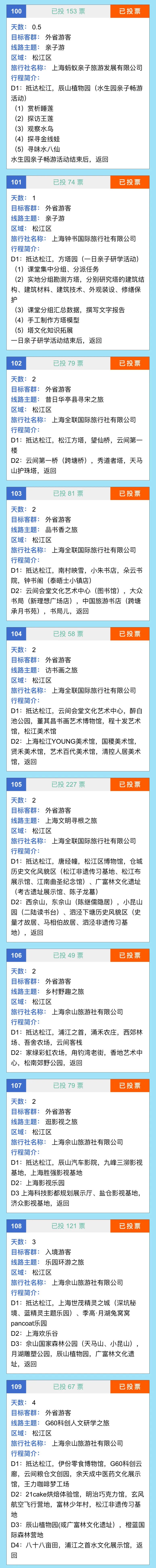 3.为松江区编号100-109的文旅线路和编号579-619的文旅点位投票。