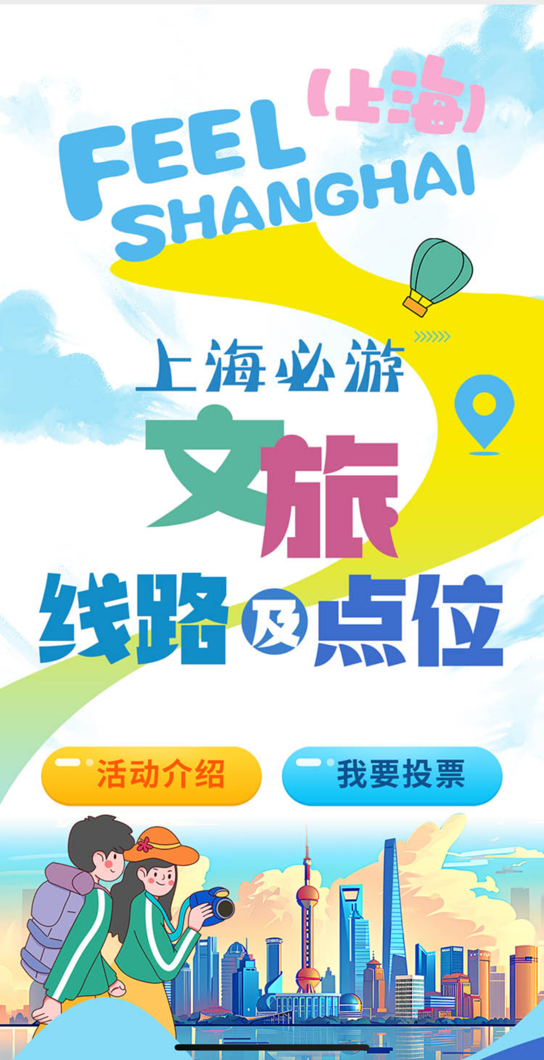 2.点击“我要投票”,再点击“上海必游文旅线路投票”和“上海必游文旅点位投票”,进入投票通道。