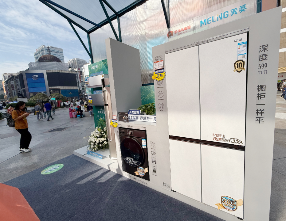市集现场,长虹携旗下AI TV、全无尘·自由风、巨能省空调、美菱M鲜生冰箱、如手洗洗衣机等明星产品悉数亮相。这些产品通过搭载AI等创新技术,与消费者的使用习惯和需求相结合,实现了功能与设计的完美融合,进一步展现长虹作为老字号品牌的匠心精神和与时俱进的创新力。