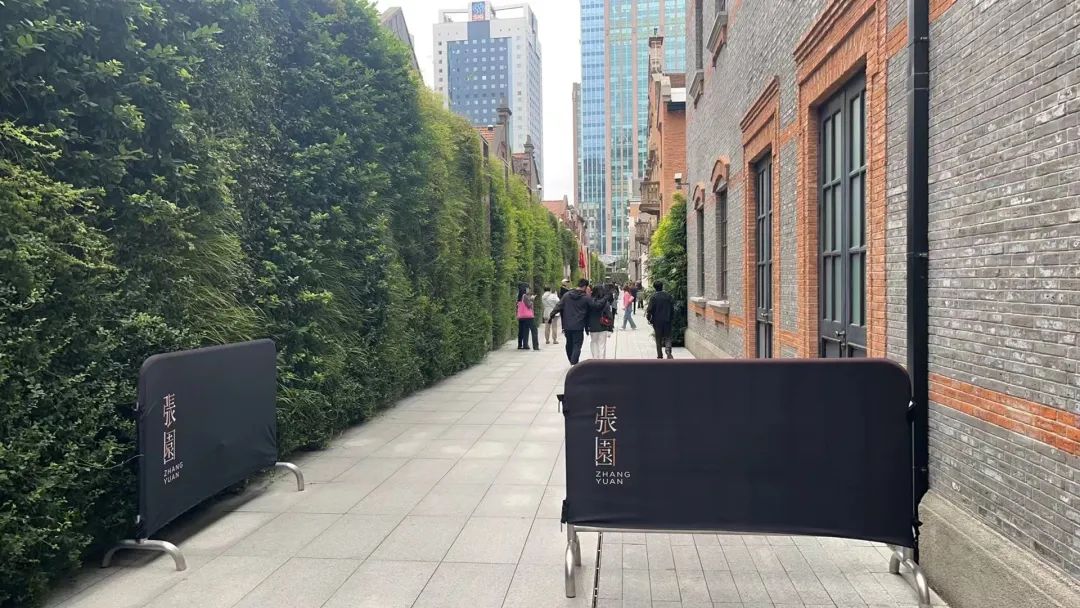 张园,从威海路入口进入,途经几十米长的过道,对景即是石库门建筑,过道两侧镶嵌着镜面装饰的“花墙”,围合而成的空间尺度虽小却时尚大气,经植物柔化后,为传递旧时里弄的温情暖意拉开序幕。