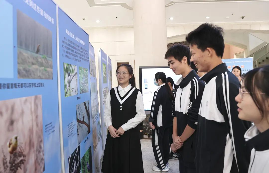 高中生学业繁忙,在王乐阳看来,抬头望天,追踪鸟的踪影,是种很好的调节方式,而且,这是随时随地都能去实现的爱好。在世纪公园的黄昏,他见到成群的夜鹭返回大树栖息,“夜鹭之家”不远处,便是居民楼的万家灯火;在春天的大树上,乌鸫的巢里伸出两只毛茸茸的小脑袋,迎接父母找来的虫子。当然,也有一些画面令人唏嘘——鸟儿在水塘里觅食,身后,是推土机扬起的尘土……这让人不禁思索起人和自然如何和谐共生。王乐阳告诉同学们,其实不用远行。尽管学校地处繁华的中心城区,但是他也陆续在校园中发现了近20种小鸟,看到过红隼在居民楼附近盘旋,听到过暗绿绣眼鸟在树丛中叽叽喳喳地鸣叫。