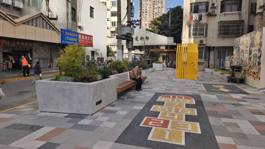 而今走进山北小区,入口门头上的“如意里”三个字透露着这里曾经的历史情怀,小区内紫藤树下的凉亭、长凳几乎每时每刻都有老年居民们坐着聊天、休息。小区上方,原先杂乱无章的架空线被全部包裹进入黑盒中,藏在树荫下的太阳能照明灯晚上能适时发出柔和的亮光方便居民探路。沿着小区内五彩斑斓的健身步道走一圈,还能随处偶遇供人休息的桌椅、长凳。