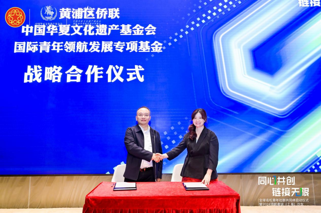 标志着公益创投的中国华夏文化遗产基金会国际青年领航发展专项基金与黄浦区侨联战略合作协议正式签约,将赋能青年科创突破、更好应对社会议题。