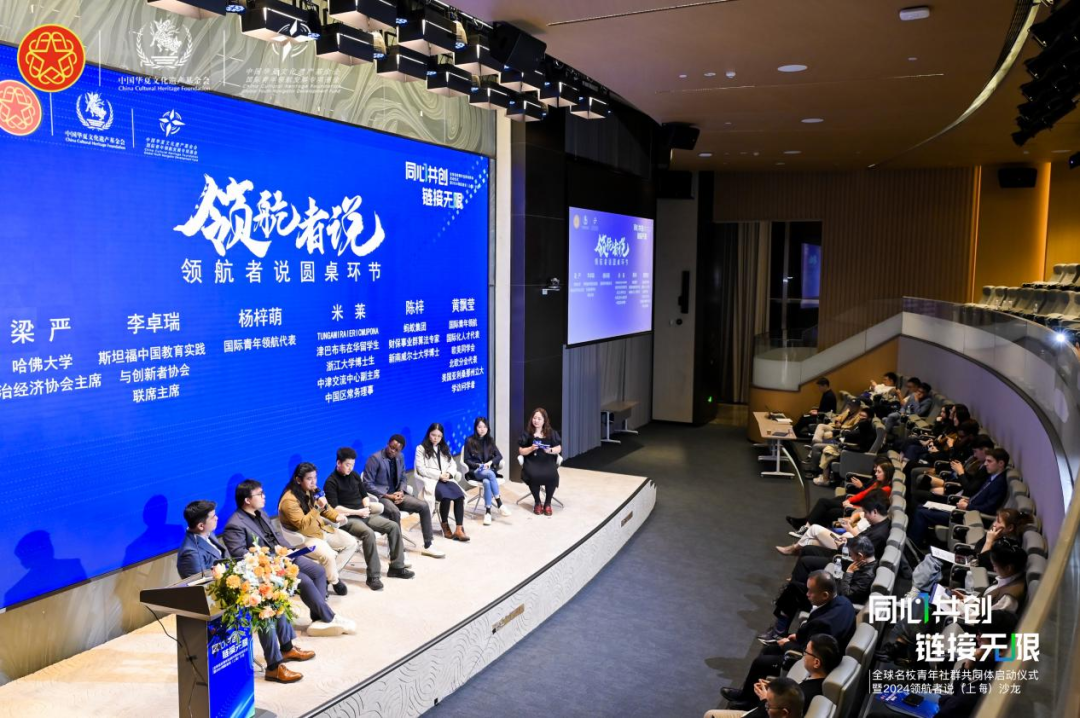 各大名校社群负责人就赋能青年群体、主推行业社会发展作了圆桌沙龙讨论。哈佛大学政治经济协会主席梁严、斯坦福中国教育实践与创新者协会联席主席李卓瑞、国际青年领航代表杨梓萌、TUNGAMIRAIERICMUPONA(津巴布韦在华留学生)浙江大学博士生、中津交流中心副主席米莱、蚂蚁集团财保事业群算法专家陈梓、国际青年领航国际化人才代表黄飘莹与到场嘉宾、观众进行交流互动。