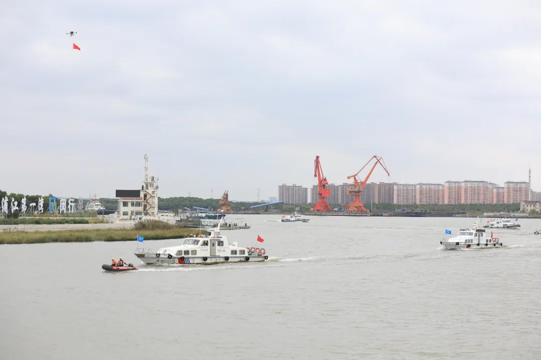 闵行海事局、区应急局、区交通委、区消防救援支队、打捞清污力量和搜救志愿者等协同作战,共有19家搜救应急单位、21艘船艇、4架无人机、100余人参加演练。