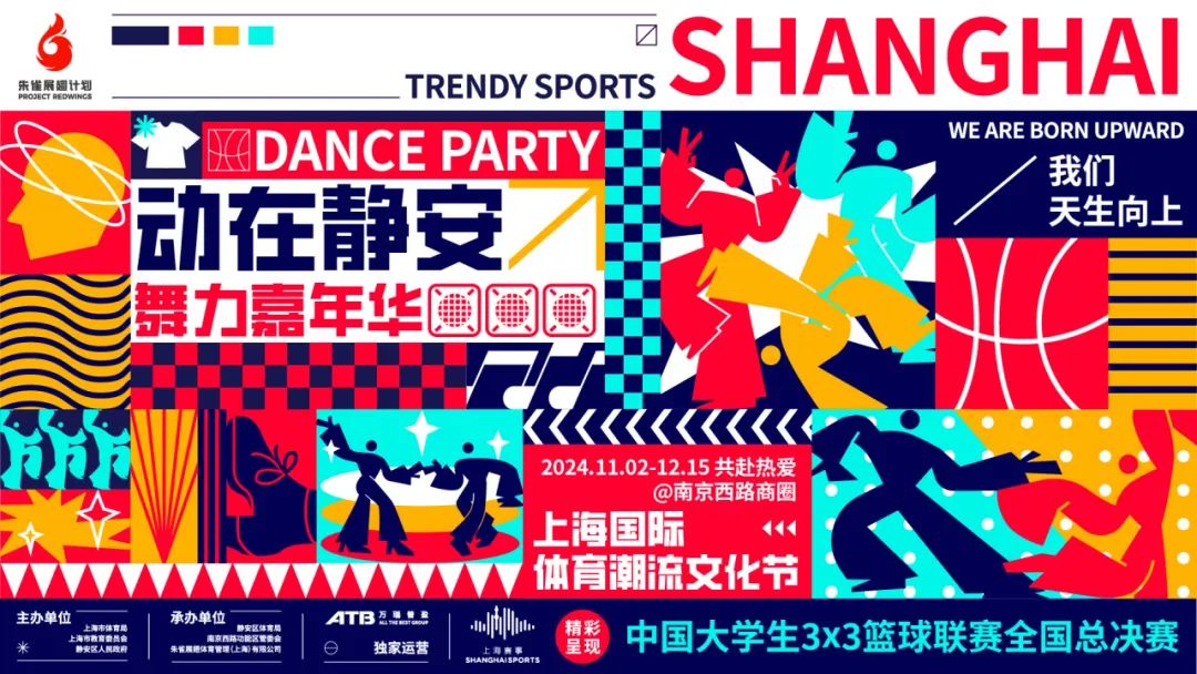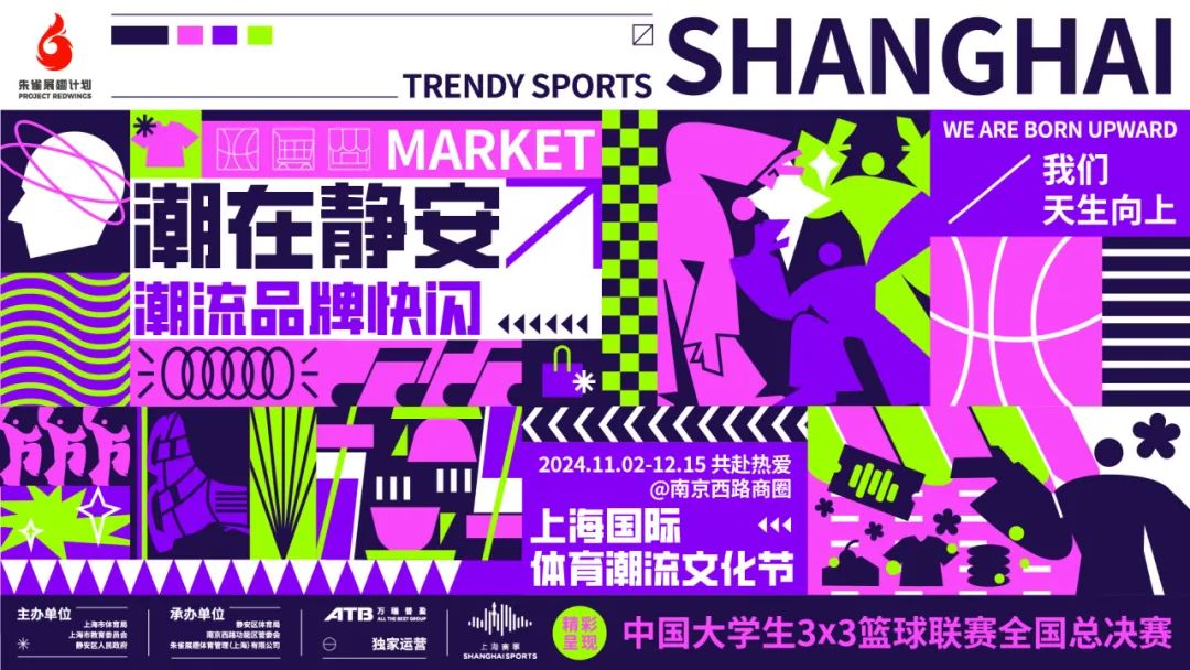 2024上海国际体育潮流文化节由上海市体育局、上海市教育委员会、静安区人民政府联合主办,南京西路功能区管委会、静安区体育局、朱雀展翅体育管理(上海)有限公司承办,万瑞普盈集团独家运营。