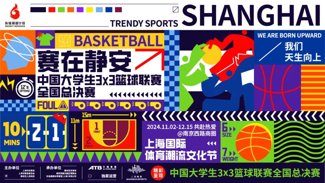 这是2024上海国际体育潮流文化节重头戏。该赛事由中国学生体育联合会主办,是全国性大学生三人篮球最高水平赛事,首次在上海举办。作为文化节的主题赛事,将于11月15日至17日在静安公园东草坪举行,比赛赛制参照FIBA国际篮联三人篮球竞赛标准(Lite Quest Level 6级别),成绩计入国际篮联三人篮球运动员积分体系。包括清华大学、北京大学、上海交通大学等来自全国各大高校的28支头部球队共计112名运动员,将进行52场比拼对抗。