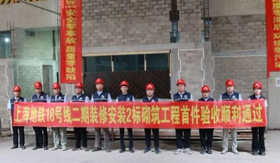 近日,18号线二期车站装修及风水电安装工程2标江杨南路站、爱辉路站完成了墙体砌筑的首件验收。在墙体砌筑过程中,基于相关施工规范,排砖先行、样板引路,严格执行标准化样板施工工艺,达到了首件工程一次成优目标。