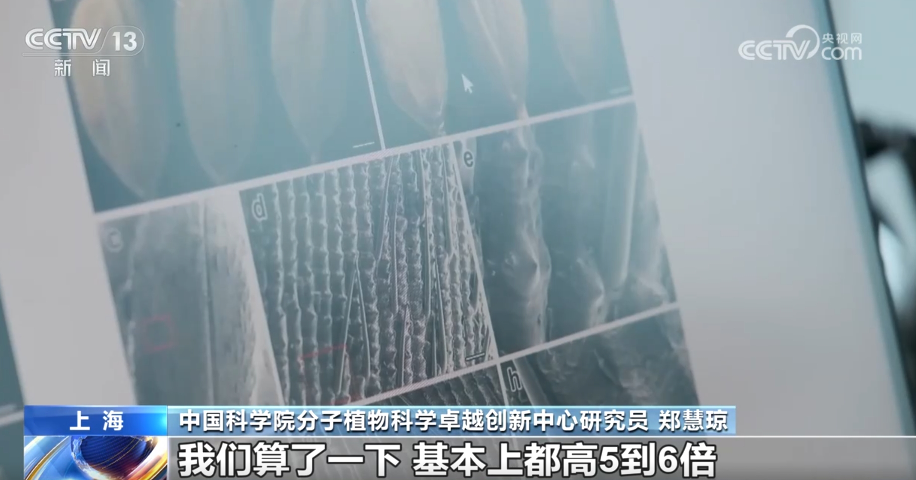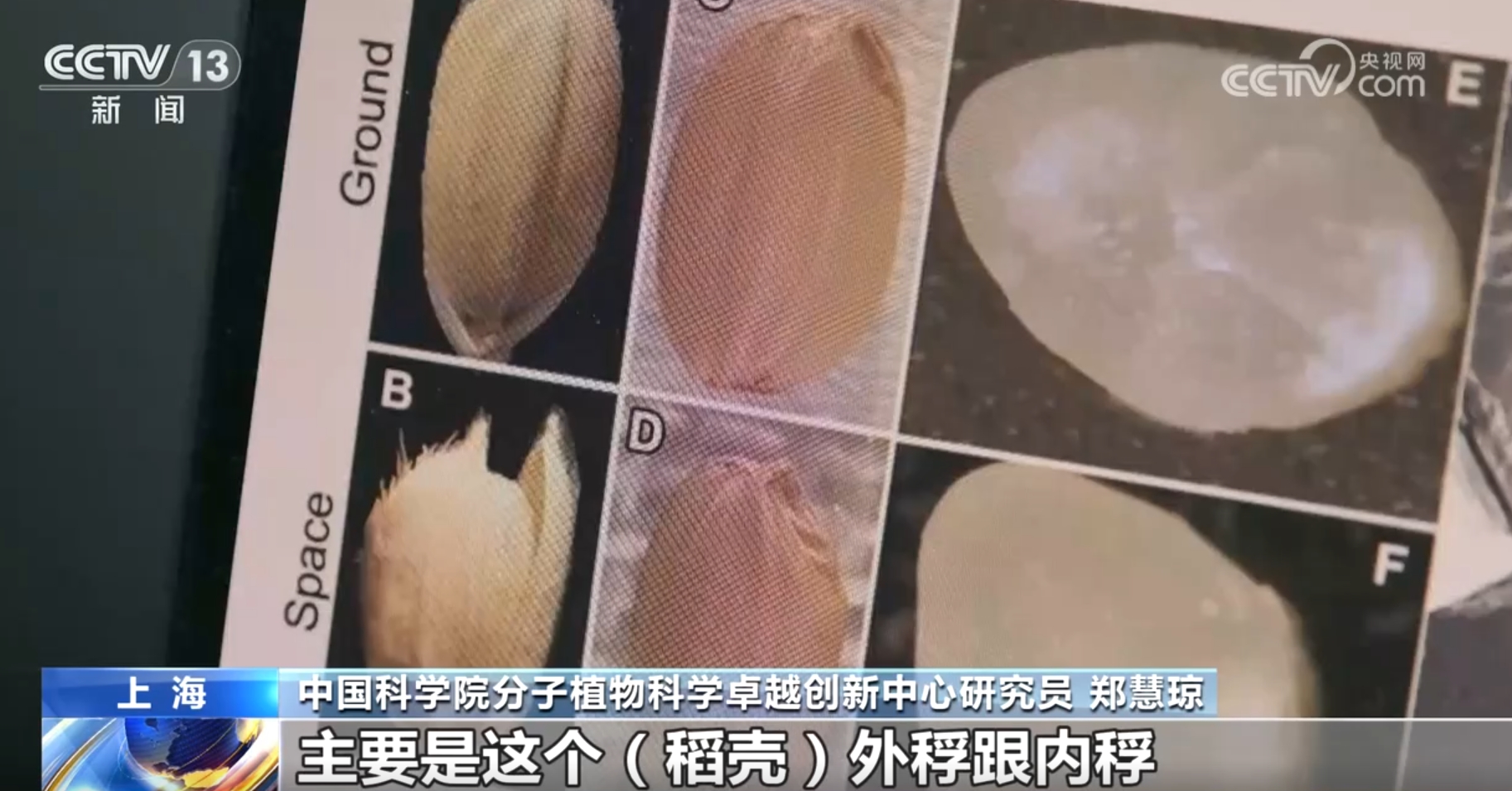 郑慧琼称:“这也是天上照相机下载的照片,可以看到这个稻壳不能关闭,大部分都不能关闭。在地面的种子一旦授粉以后,马上就关闭了,而天上的种子到成熟了以后都不能关闭,主要是这个稻壳外稃跟内稃,这个外稃的尺寸变得细长了,所以它就不能关闭了。当中有什么分子生物学的机制,这个我们也在研究。”