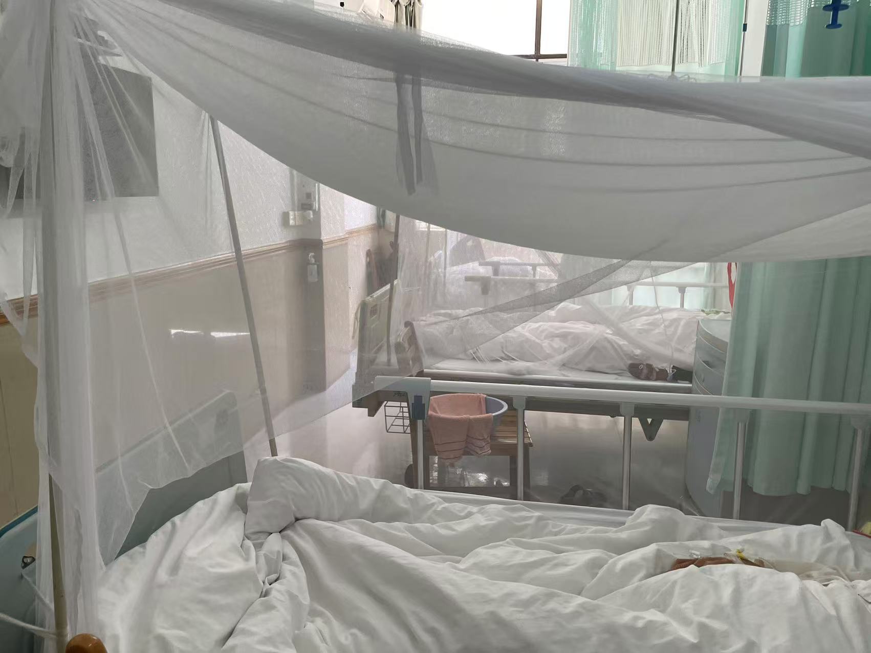 如10月24日,第一财经记者走访了佛山复星禅诚医院感染科病房,该医院是佛山收治登革热患者的定点医院之一。记者在感染科病房中看到,收治登革热患者的床位都挂了蚊帐。不仅如此,病房门口也挂着帘子,目的是为了防范蚊子。