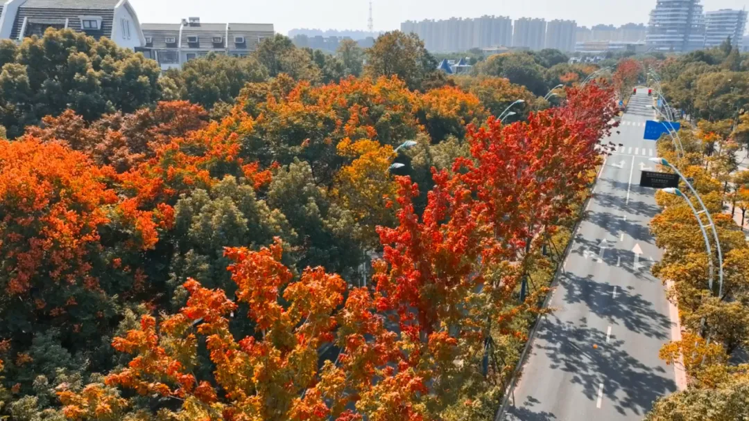 暖阳透过“四季幻彩”红枫大道,洒下点点斑驳,漏出缕缕疏影,映衬得秋日的天空通透又明艳。银杏铺陈在“落叶不扫”的罗芬路景观道,展现出流金溢彩的绚丽景色。