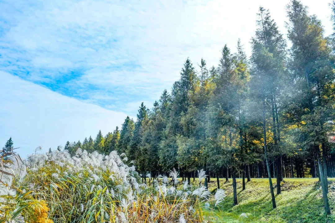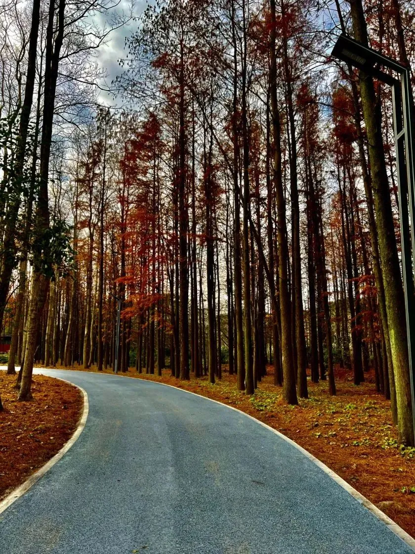 除了成片的水杉大道外,林内还有天然的湿地,栖息了许多珍稀鸟类。秋日来此漫步,听鸟鸣阵阵,感微风轻拂,看芦苇荡漾,整个人都会得到放松。