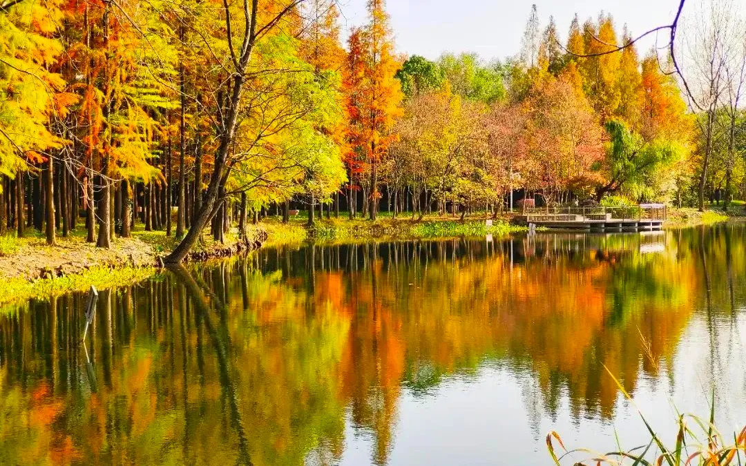 漫步于美兰湖的缤纷秋林,看湖面波光粼粼,感受阳光融融暖意,便能享受到宁静美好的秋之韵。