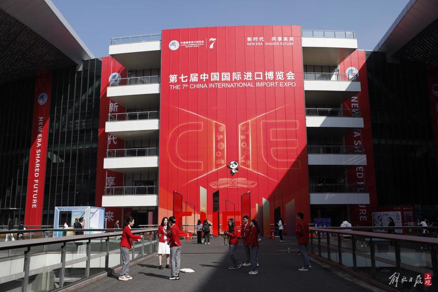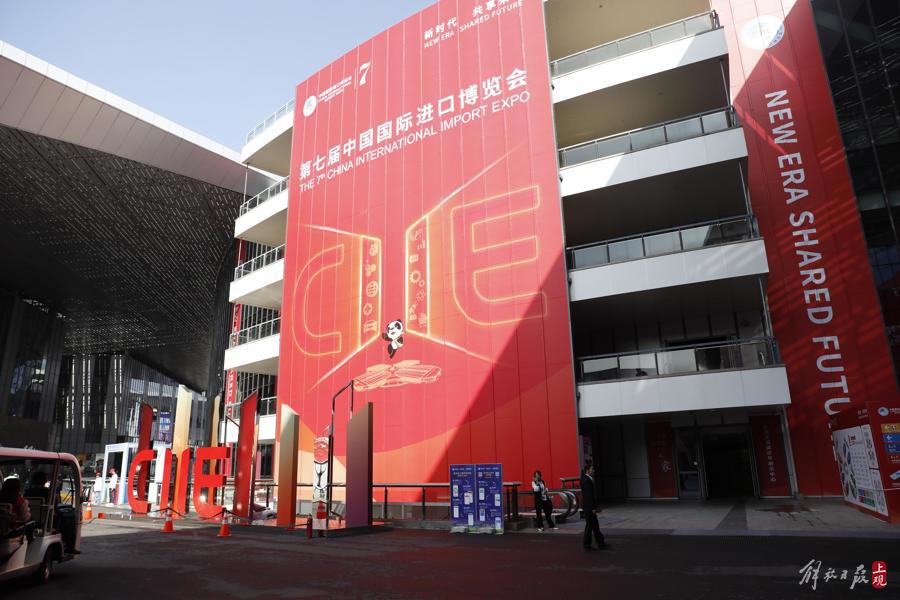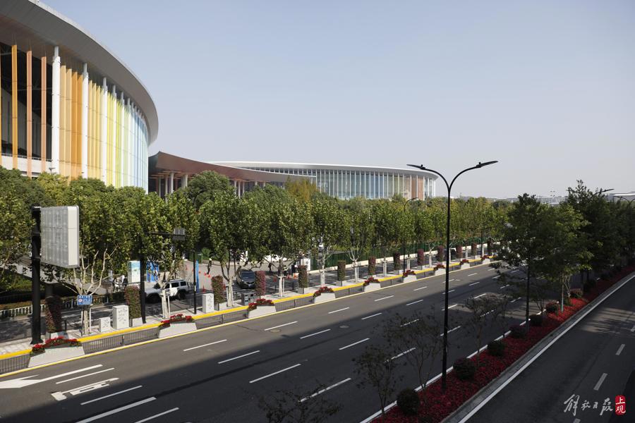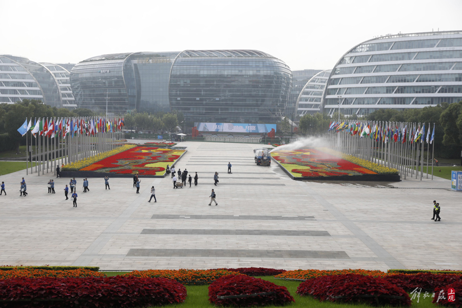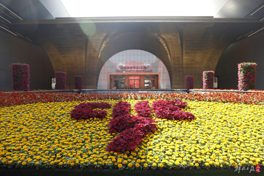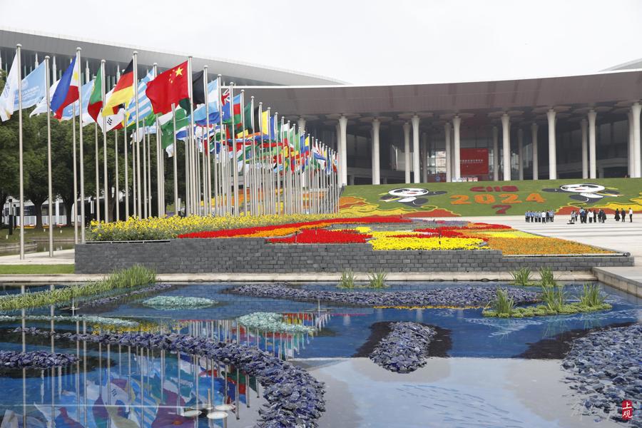 装饰一新的国家会展中心(上海)南广场,成为人们观景和拍照打卡地。