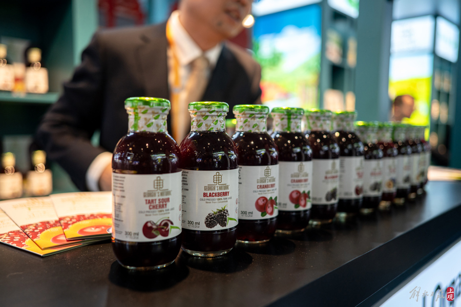 长时间的日晒和干燥的风土也造就了格鲁吉亚种植水果的良好环境。进博会现场,格鲁吉亚出产的黑莓、樱桃汁也吸引了来自中国客商的关注洽询。