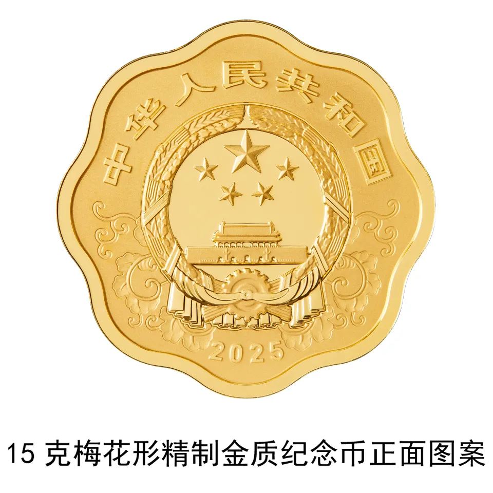 15克梅花形金质纪念币为精制币,含纯金15克,外接圆直径27毫米,面额200元,成色99.9%,最大发行量8000枚。