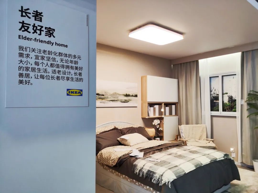作为全球性家居零售商,宜家致力于满足不同年龄段消费者的需求,包括老年人。展台特别设置“长者友好家”展区,以真实家居场景呈现适老化设计和改造如何融入日常生活。在这个空间中,人们可以感受为长者设计的卧室和浴室场景。
