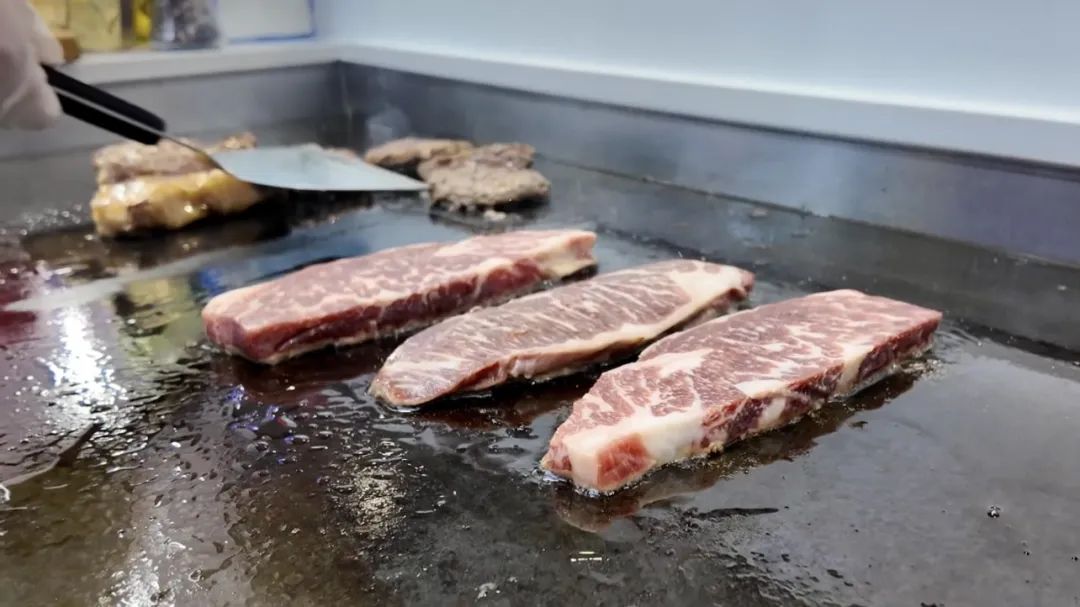 记者在现场注意到,百佑佳展位位于食品及农产品展区工行展台区域,本次带来包含牛仔骨(谷饲)、牛西冷(特选级)、牛肋条(特选级)、牛小排(美国冷冻)(极佳级)等在内的近三十款产品。同时,每日均会推出试吃活动,现场烹饪,邀请消费者品尝。