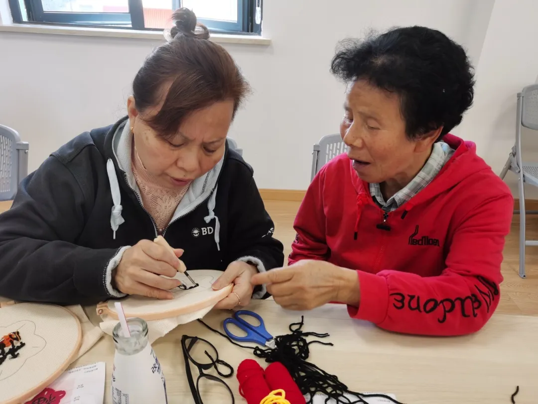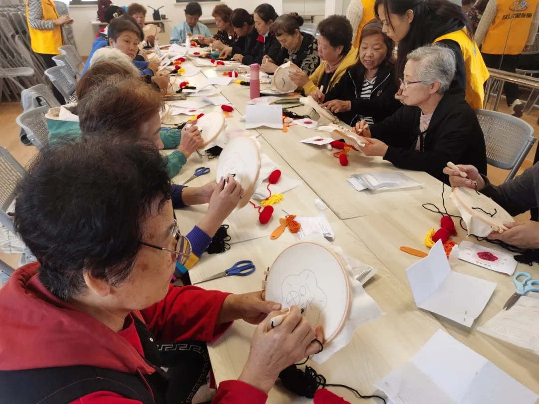 华浜新村居民区新时代文明实践站组织开展“悦动指尖,戳出快乐”手工戳戳绣活动。工作人员准备了丰富的制作材料,包括各种颜色的绣线以及精美的图案样本。工作人员介绍了戳戳绣的绣法及戳线小技巧,指导如何巧妙运用手中戳针,将线戳刺出相应图案。大家纷纷拿起绣针,从穿针引线开始,沿着作品轮廓一针一线地钩织。有的居民技艺精湛,绣出的作品精致美观。有的初学者手法不甚娴熟,但在大家的鼓励与指导下,也慢慢掌握了技巧。经过大家不断的“戳戳戳”,一幅幅色彩斑斓、造型各异的戳戳绣作品呈现在面前。
