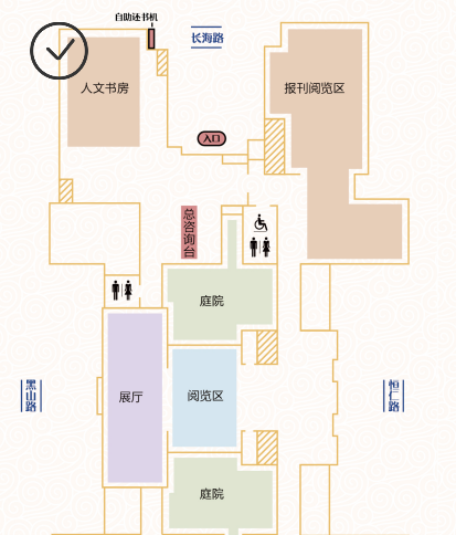 读者进门的区域,是原历史建筑之外的拓展区,这部分地面没有铺设80年历史的红缸砖,因此铺设盲道不会破坏主体建筑,而这条盲道的最大功能就是第一时间引导盲人来到了新增的无障碍阅读室。