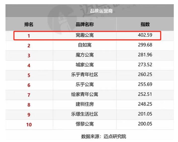 据悉,窝趣公寓作为长租公寓的头部品牌,今年已经6次位居迈点指数“品牌运营商品牌指数排行榜”榜首,是窝趣公寓在住房租赁行业卓越表现的印证。