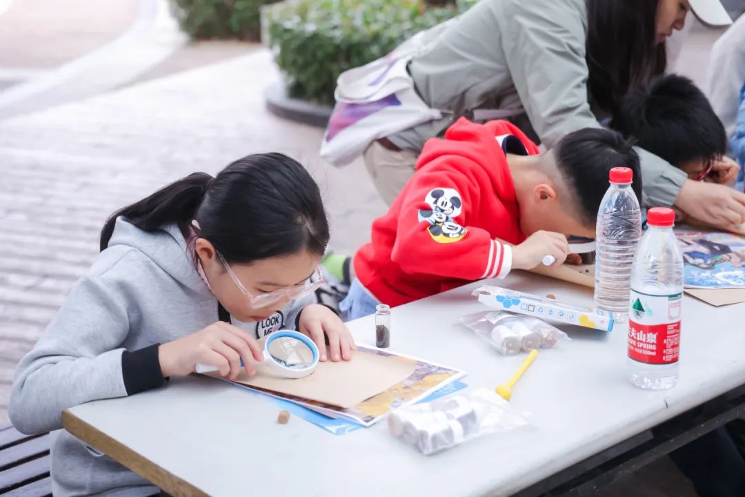 接着,大家把取好的样品进行分离,有步骤、有条理地筛出不同大小的土壤颗粒,探索他们的透水特点。活动的最后,现场志愿者向小朋友们分发土壤,苔藓,水草等材料,让小朋友根据所学内容制作生态瓶,模拟一个小小的生态环境,通过制作生态瓶,小朋友们意识到保护植物和生态环境的重要性。
